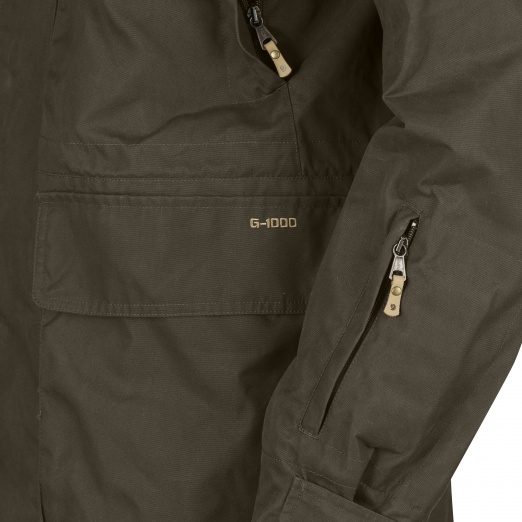Stevig jack voor zowel de passieve- als actieve jacht, gemaakt van G-1000 Silent Eco met een wind- en waterdichte Hydratic voering. Een comfortabel en duurzaam kledingstuk dat niet ritselt wanneer je beweegt en een ruime snit heeft zodat je er warme lagen onder kunt dragen. Goed doordachte details maken het makkelijk om je te concentreren op wat je aan het doen bent; zoals de makkelijk bereikbare zak met munitiehouder op de linkermouw en een clip-on bevestiging voor een communicatieradio op de linkerschouder. Het jack heeft ook een grote napoleonzak aan de linkerkant en met fleece gevoerde steekzakken op borsthoogte. Onderaan het jack zitten grote plooizakken met kleppen en een extra opening aan de zijkanten, en in de rechterzak zit een munitiehouder. Er zijn twee binnenzakken van gaas om dingen als een hoed of handschoenen op te bergen. De manchetten zijn verstelbaar met klittenband en de wijdte van de taille en onderkant stel je af met elastische trekkoorden.
