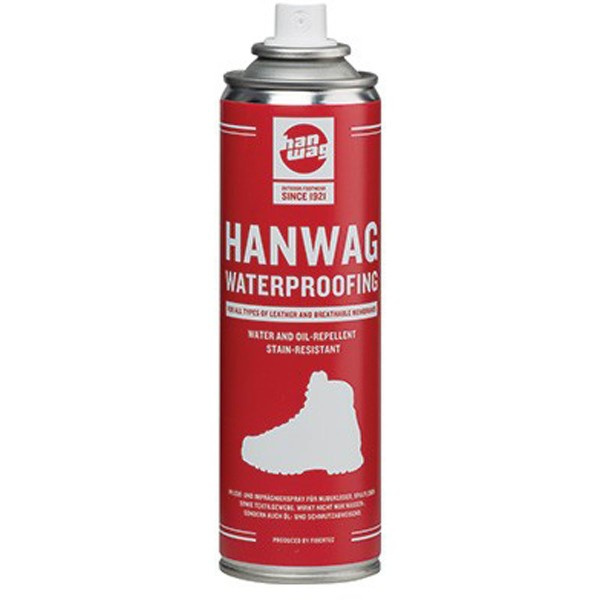 Hanwag Waterproofing spray is een milieuvriendelijke waterafstotende impregneerspray voor alle types leer en synthetische bovenwerken – ook geschikt voor schoenen en laarzen met een GORE-TEX® voering.